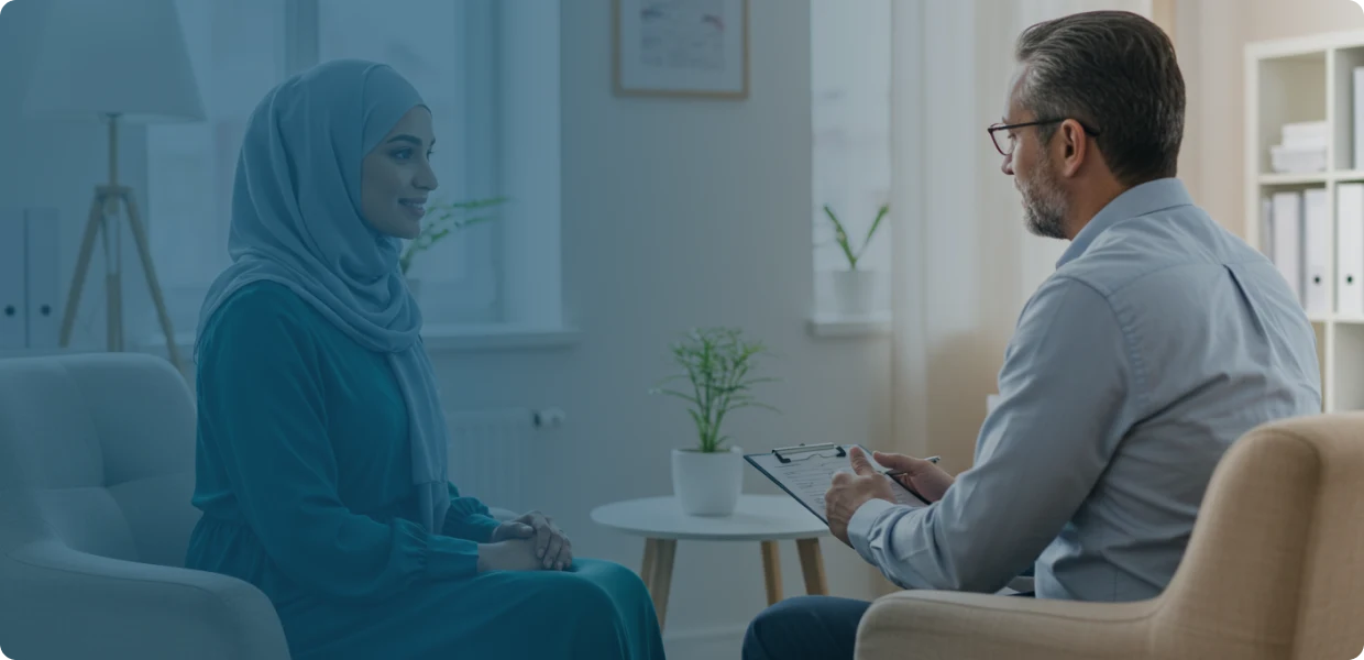 Du kan velge å søke individuell veiledning fra både en terapeut og en imam. Teamet vårt inkluderer ekspertterapeuter som spesialiserer seg på moderne psykologi og islamske verdier. Vi tilbyr også økter med en imam om ønskelig